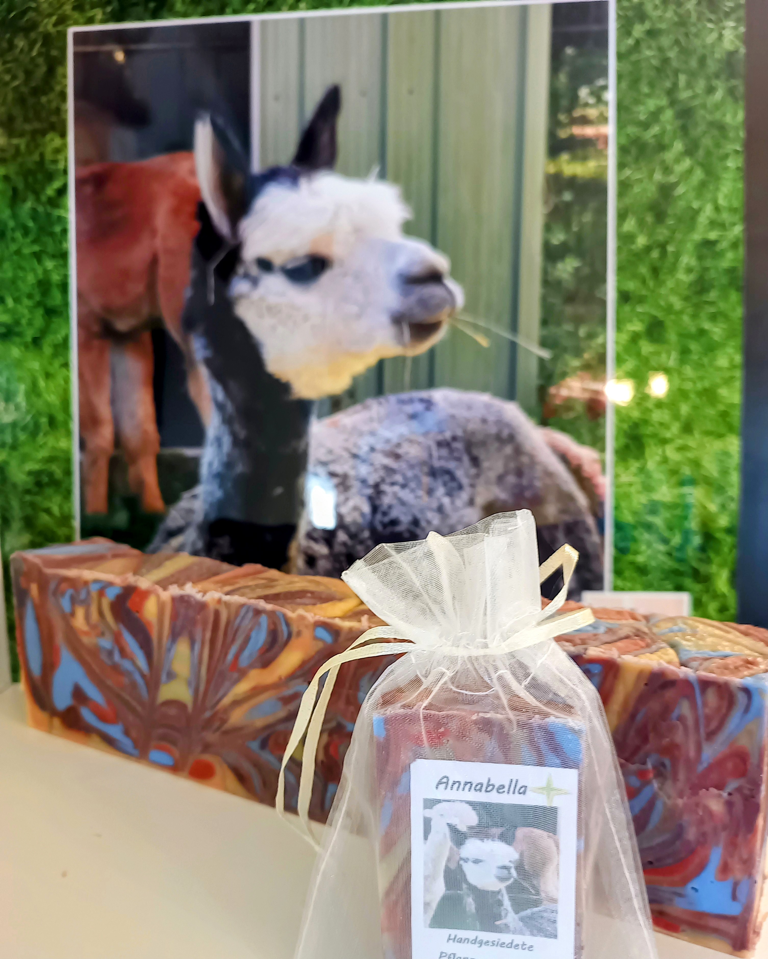 Benannt nach der sanften Alpakadame Annabella, steckt in dieser Naturseife pure Geborgenheit und natürliche Pflege. Das feine Alpakakeratin umhüllt Haut und Haar wie ein zarter Schleier und schenkt dir ein wunderbar gepflegtes Gefühl.
